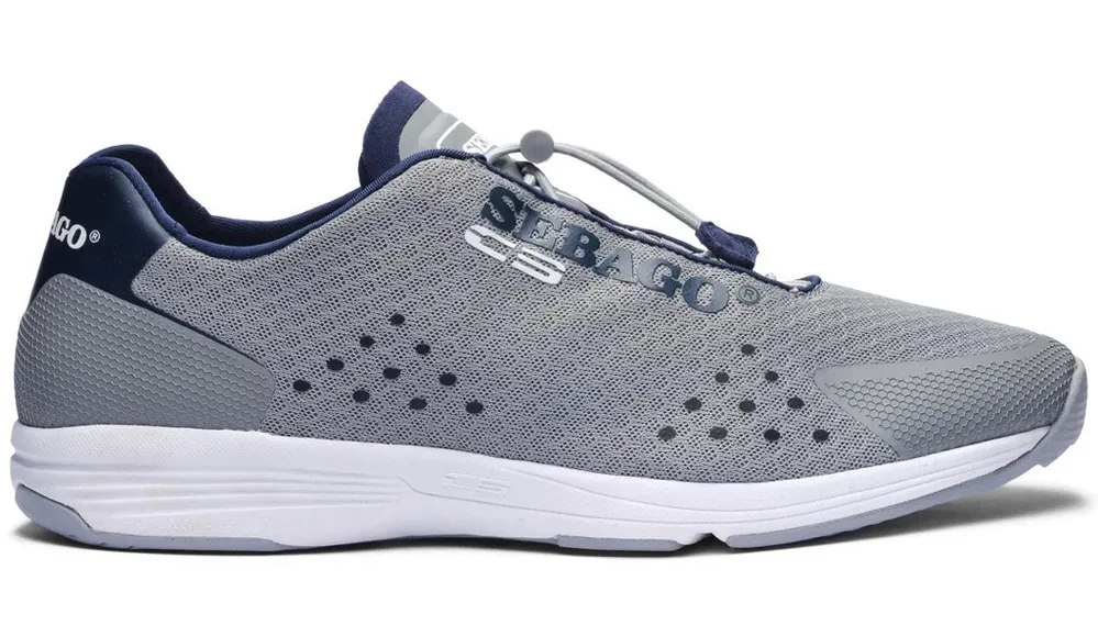 Features: Brand: Sebago Style: Cyphon Sea Sport Color: Gray with navy accents Closure: Slip-on with... Show more