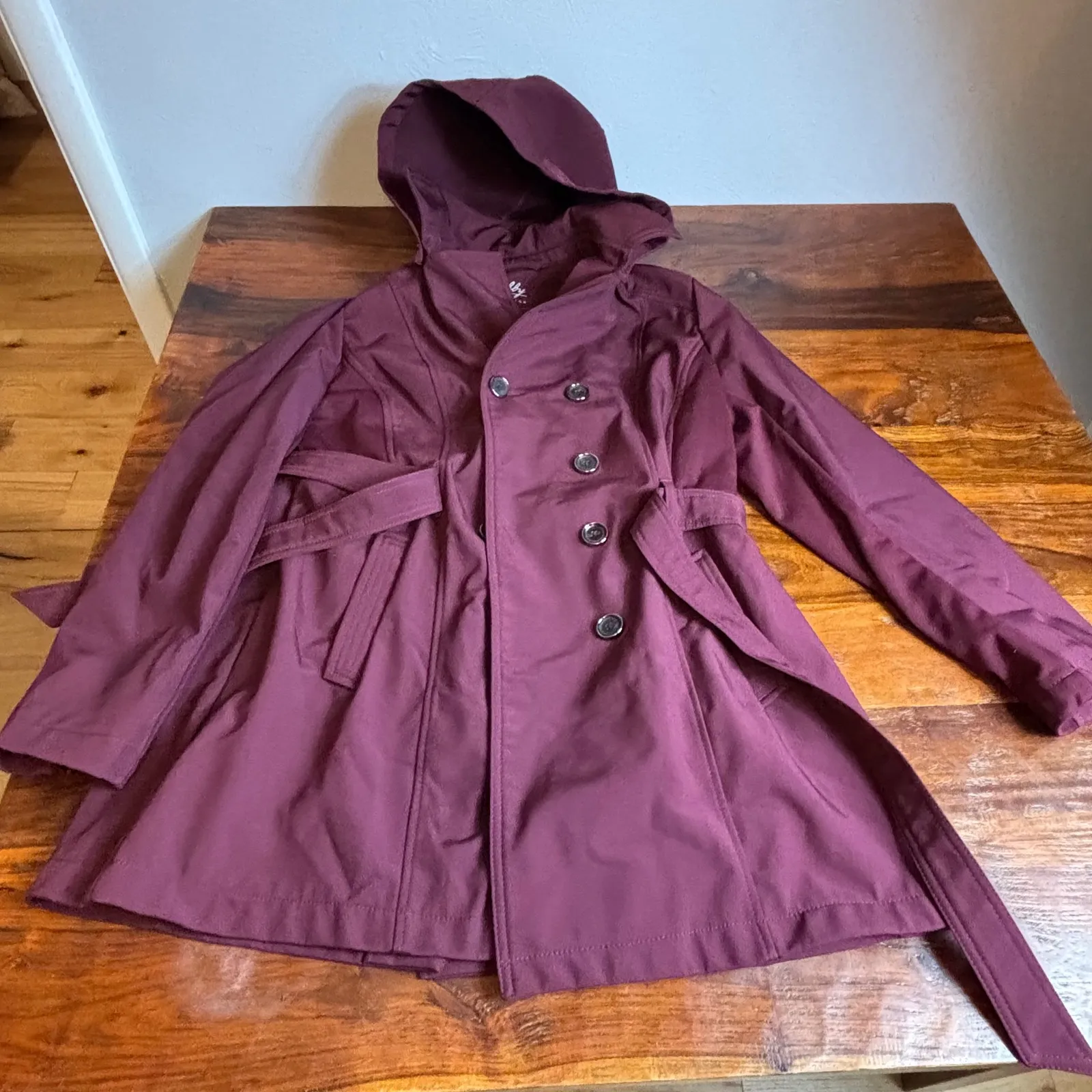 Embrace the elements in this stylish Sebby Collection hooded trench coat. Designed to keep you comfortable and chic, this coat offers reliable protection against wind and rain without sacrificing fashion. The rich burgundy hue adds a sophisticated touch to any outfit, while the adjustable belt cinches your waist for a flattering silhouette. Its hooded design provides extra coverage on blustery days, making it perfect for your daily commute, weekend adventures, or simply enjoying a stroll in the park. Measurements: • Waist: 20 in • Length: 30 in Type: Coat Outer Shell Material: Polyester Style: Trench Coat Department: Women Lining Material: Polyester Theme: Outdoor Accents: Button, Strap Features: Windproof, Removable Hood, Pockets Fabric Type: Softshell Pattern: Solid Insulation Material: Polyester Season: Fall, Spring Closure: Button, Tie Keywords: Sebby Collection, trench coat, hooded coat, water resistant, windproof, burgundy, outerwear, fall fashion, spring jacket, travel essential, commuter jacket, everyday wear Smoke free, pet friendly home May be mailed in recycled materials See photos for best description and measurements Most items are being sold on consignment