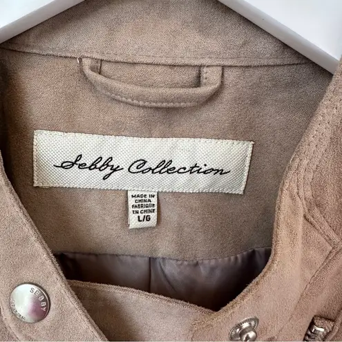 Sebby Collection Faux Suede Moto Jacket •color taupe •silver zipper accents •size large •approx mea... Show more