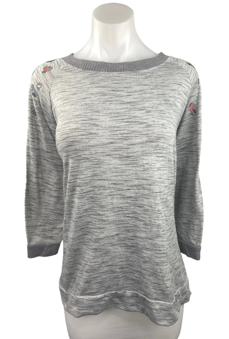 Secret Treasures Gray Heathered Rib Trim Crew Neck Long Sleeve Sweater Top Pullover Oversized Floral... Show more