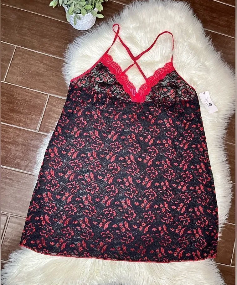 Secret Treasures black/red lace baby doll sz 2X Black - $16 New With Tags - From Blue