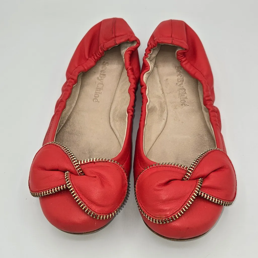 Add a touch of feminine charm to your wardrobe with these See by Chloe Clara Zipper-Bow Ballerina Fl... Show more