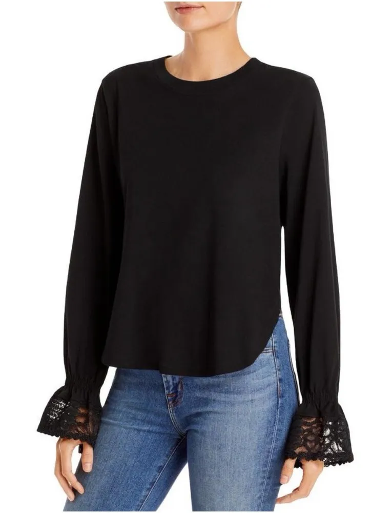 See by Chloe Cotton Crewneck Lace Trim Bell Sleeve Guipure Blouse Black Size S‎ - $63 - From Patchworked