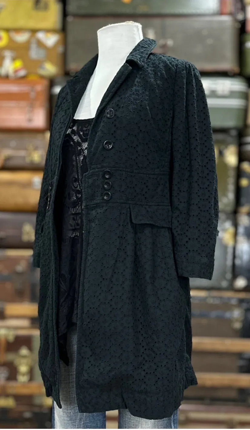 Womens size 6 Pit to pit 17" Waist 15" Length 34" Sleeve 20" Measurements approximate Cotton does not have stretch Lined jacket Made in Italy Button closure Faux decorative pockets Real side pockets Fast shipping