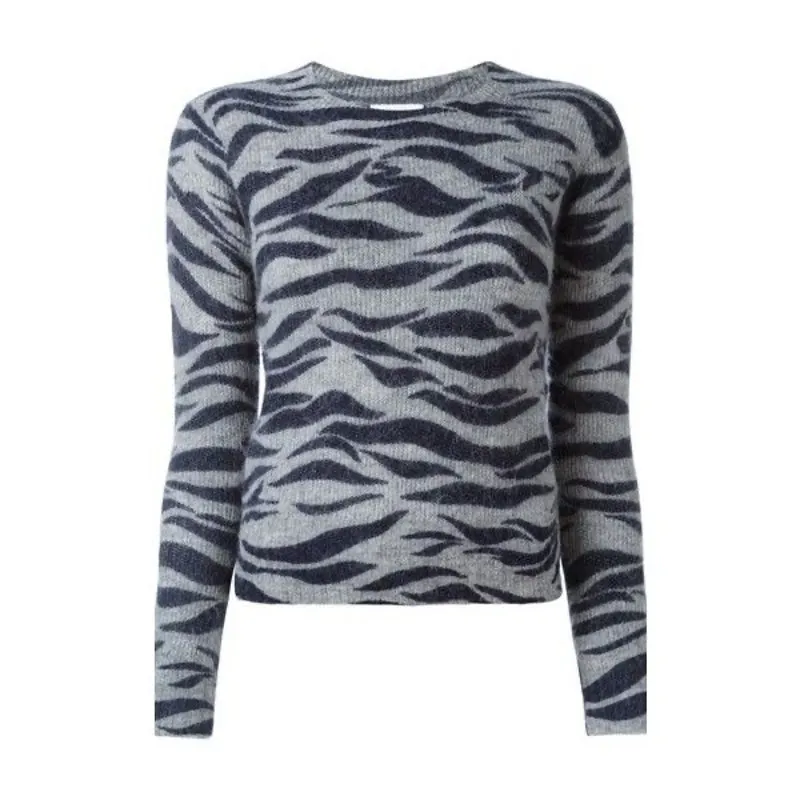See by Chloe Grey Melange Zebra Animal Print Striped Crewneck Wool Sweater Small Gray - $59 - From Shoshi