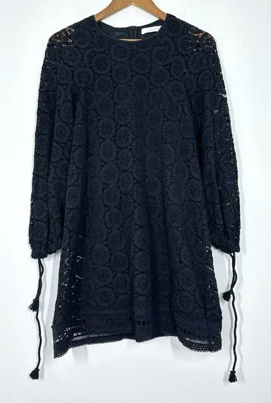 See By Chloe Black Boho Crochet Mini Dress Ballon Sleeve Brunch Wedding Guest EU Size 36 = US Size S... Show more
