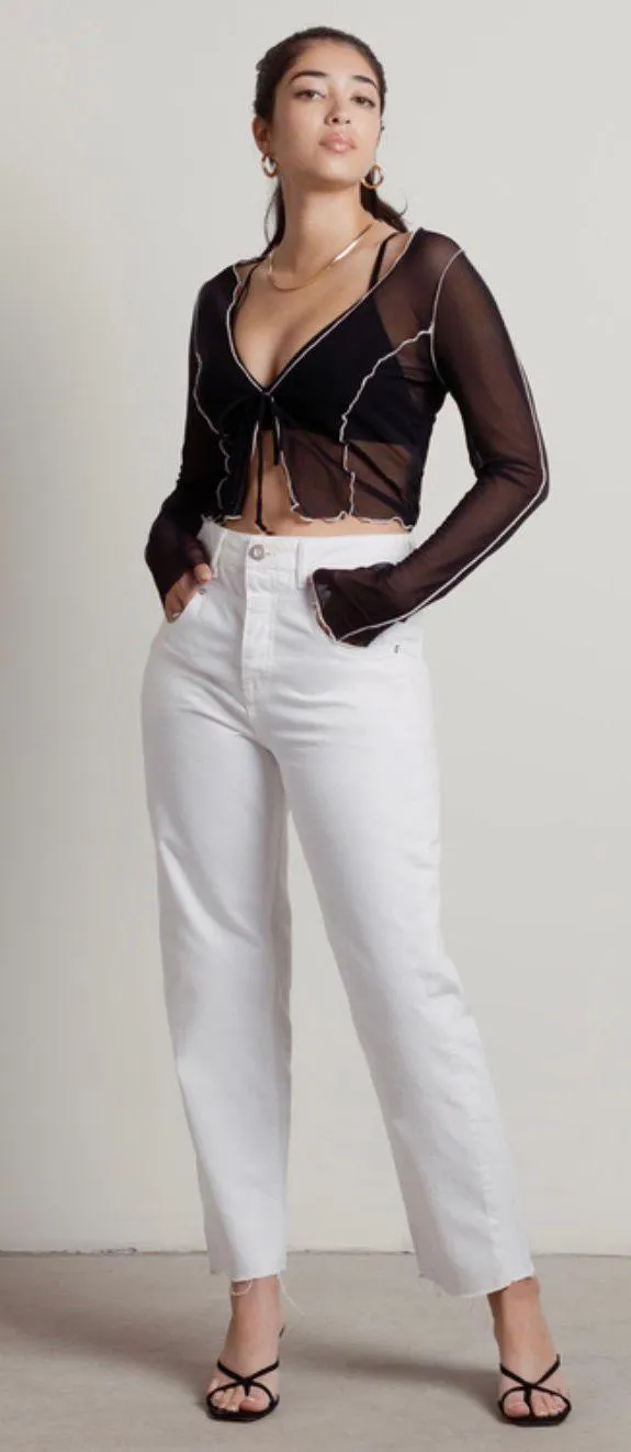 SEE IT ALL SHEER CONTRAST OVERLOCK CROP TOP IN BLACK