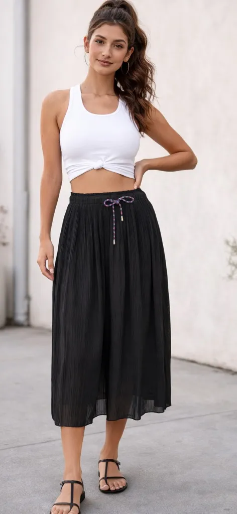 This elegant black pleated skirt is perfect for any occasion. Its classic design offers a timeless l... Show more