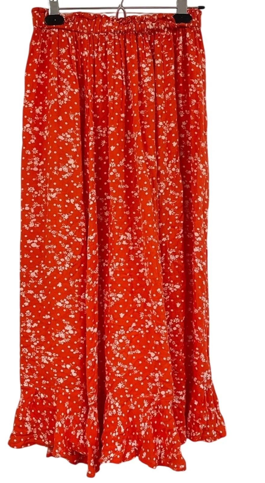 Seed Red & White Ditsy Floral Maxi Skirt Ruffled 6 Preowned in excellent condition Quick Shipping, Professional Seller. Offers Welcome. Bundle & Save! Cottage core romantic flowy lightweight prairie chic summer lightweight pilgram prairie EEE21
