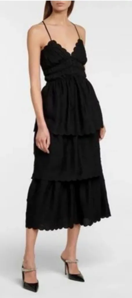 Who said dresses can’t be pretty fascinating? The Self Portrait 3D Flower Tiered Midi Dress will help you through the evening parties in the most effortless way. This tiered midi dress features a statement bodice and pin-thin shoulder straps. The back is created with lace-up detailing to help you look cute. The skirt of the dress falls in various tiers and every level is scalloped. The statement of the dress is the 3D flowers that are adorned all over the skirt. Fabric: Mid-weight, non-stretch crepe Thin, fixed shoulder straps Ruched bodice with buttons at front Lace-up at back Covered elastic waistband Tiered skirt with on-seam hip pockets Scalloped edges Allover floral appliqués Shell: 100% polyester Lining: 100% cotton Preowned no flaws. Size US 6 / UK 10 Flatlay Measurements (approximate) Chest 18 inches shortest Length 46 inches without strap Waist 14 inches unstretched Hip 20 inches