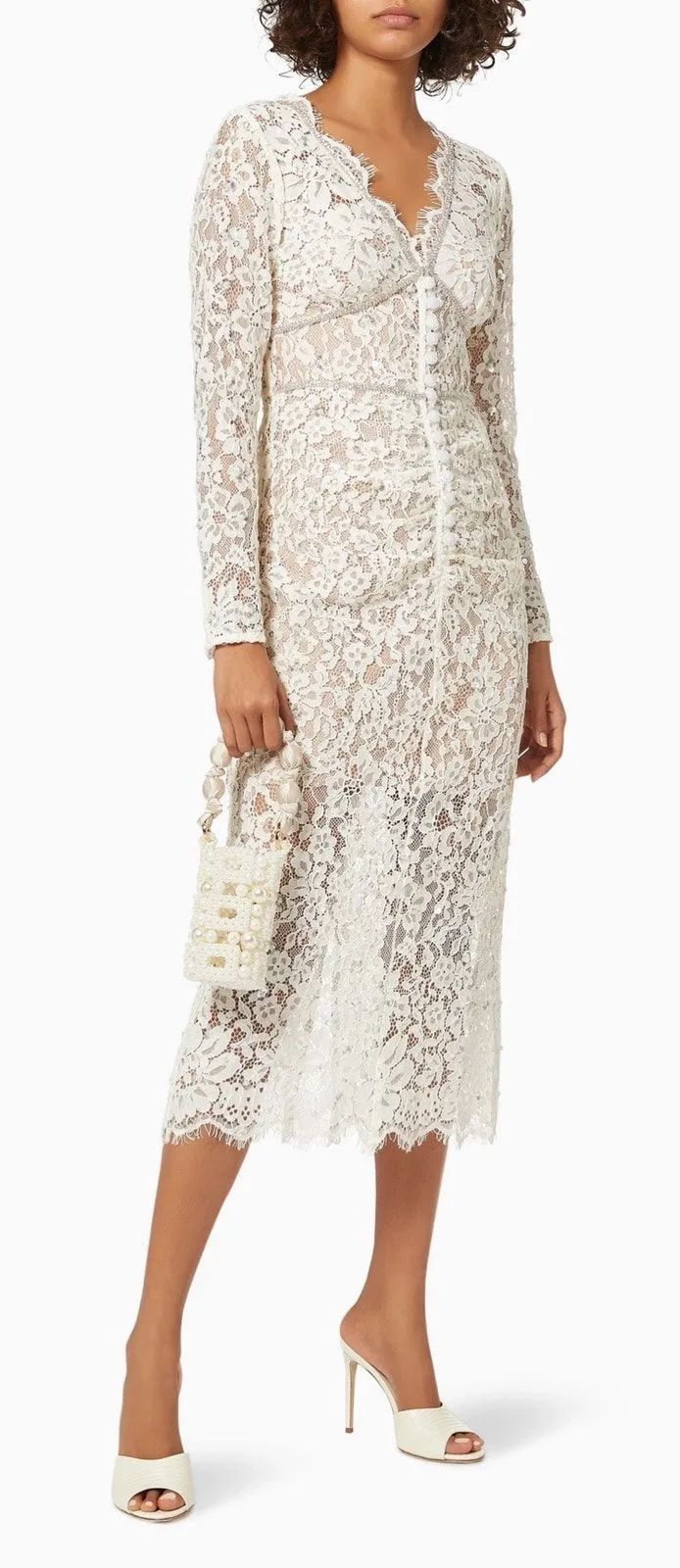 STUNNING Self-Portrait Rhinestone Beaded Embellished Cord Lace Midi Dress! Hidden back zip. Removable partial lining. Rhinestone, beaded, sequins oh my. Just the most beautiful dress you’ve ever seen Measures flat approximately Chest 18" Waist 14.75 Length 50 •Size: US 8 / UK 12 •Condition: Excellent preowned – like new, cuff buttons still wrapped •Color: cream/ivory/off-white/winter white + silver rhinestone sparkle Pictures are part of the description. Color may vary by screen. Smoke free, DOG FRIENDLY home. togs: bridal wedding rehearsal dinner engagement party bridal shower ceremony reception destination wedding valentines valentines day date night romantic evening cocktail attire formal event elegant feminine sophisticated chic romantic aesthetic timeless classic luxury designer special occasion spring summer second wedding mature bride alternative bridal garden wedding photo shoot welcome party rehearsal attire anniversary celebration holiday party