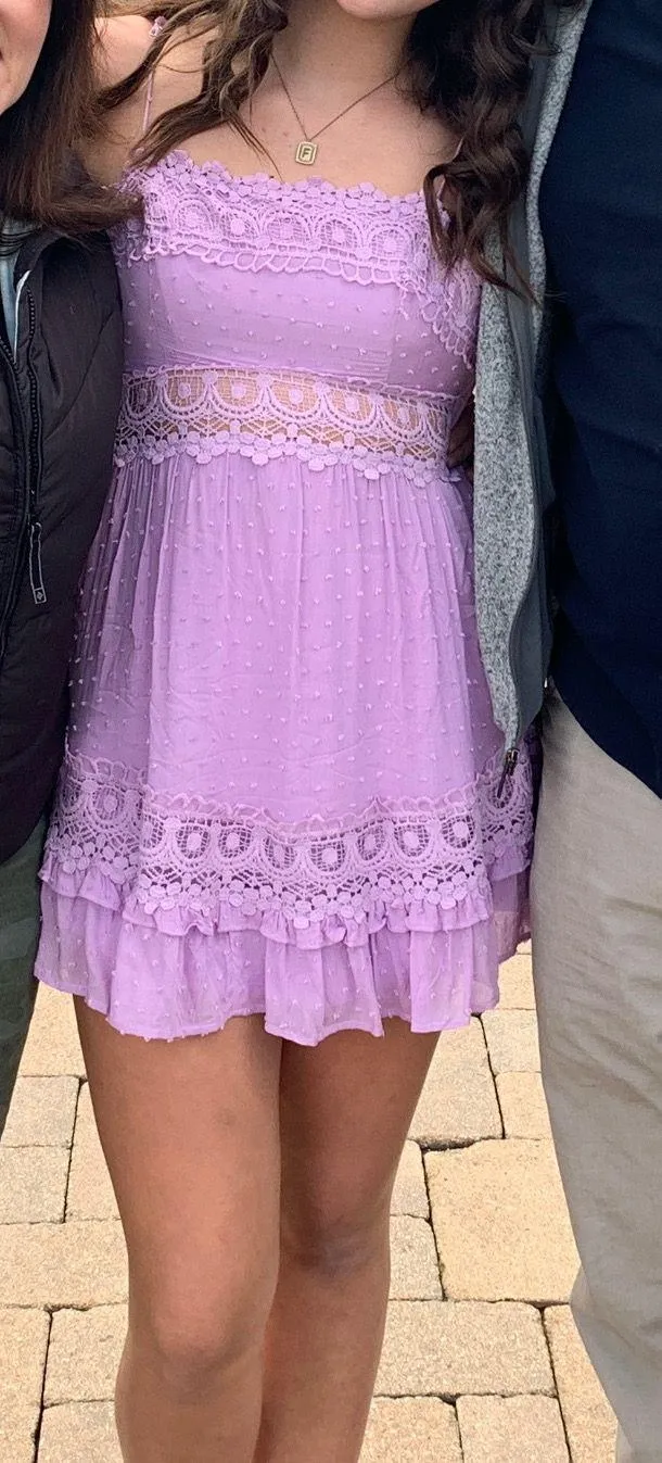 This dress was been worn one time. It’s a super cute light purple color and the back is adorable! It... Show more