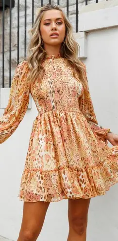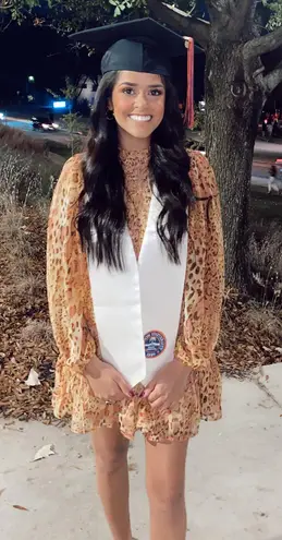 Super cute dress from Selfie Leslie! Worn ONCE for graduation. Mostly orange/yellow with hints of pi... Show more