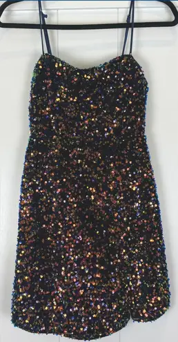 Keywords: Sequin dress, Mini dress, Party dress, Cocktail dress, Sparkly dress, Navy dress, Multi colored dress, Selfie Leslie, Size S, Women's dress, Night out dress, Club dress, Dressy, New with tags