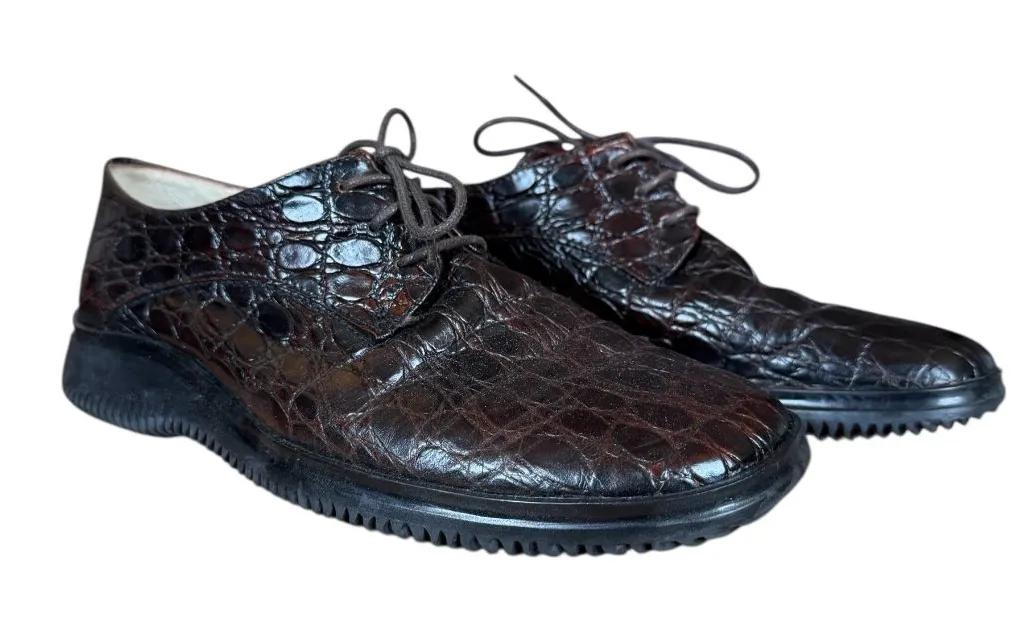 Women's Sesto Meucci brown crocodile embossed leather lace-up loafer shoes with a distinctive lug sole, size 6 1/2M. Made in Italy. These look like new other than a couple of spots on the inside. Please feel free to ask me questions. Smoke free pet free home. Quick shipper! These have a couple spots on the inside