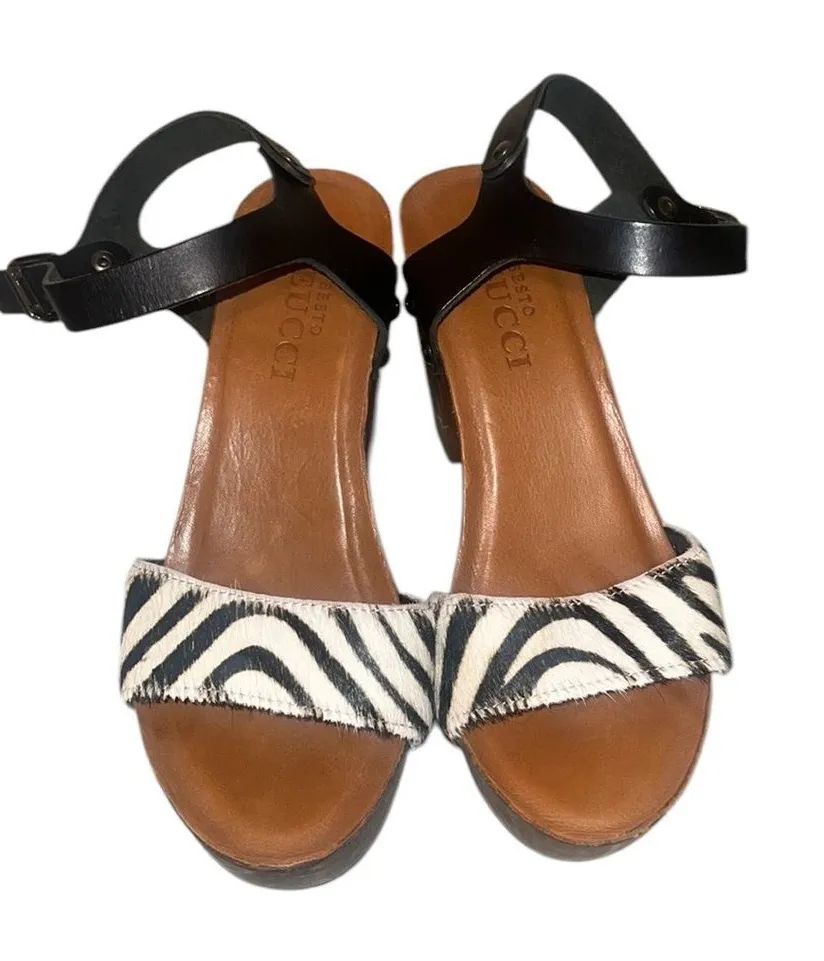 Sesto Meucci Zebra Hairy Calf Print snd Black Women's Sandals Size 37 - $18 - From Val