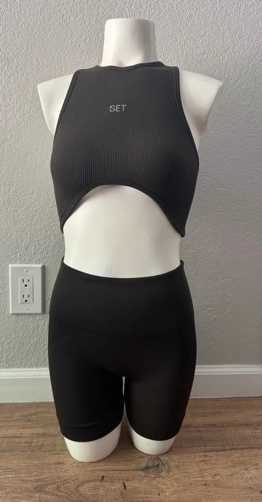 SET Active Dark Brown Sculptflex Shorts Sport Bra Workout Yoga Pilates Set S - $45 - From Sarah
