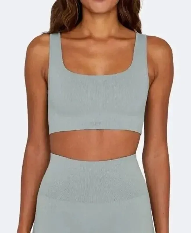 SET Active Sculptflex Power Ribbed Sports Bra Bike Short Set Muted Blue Large - $60 - From DANIELLE