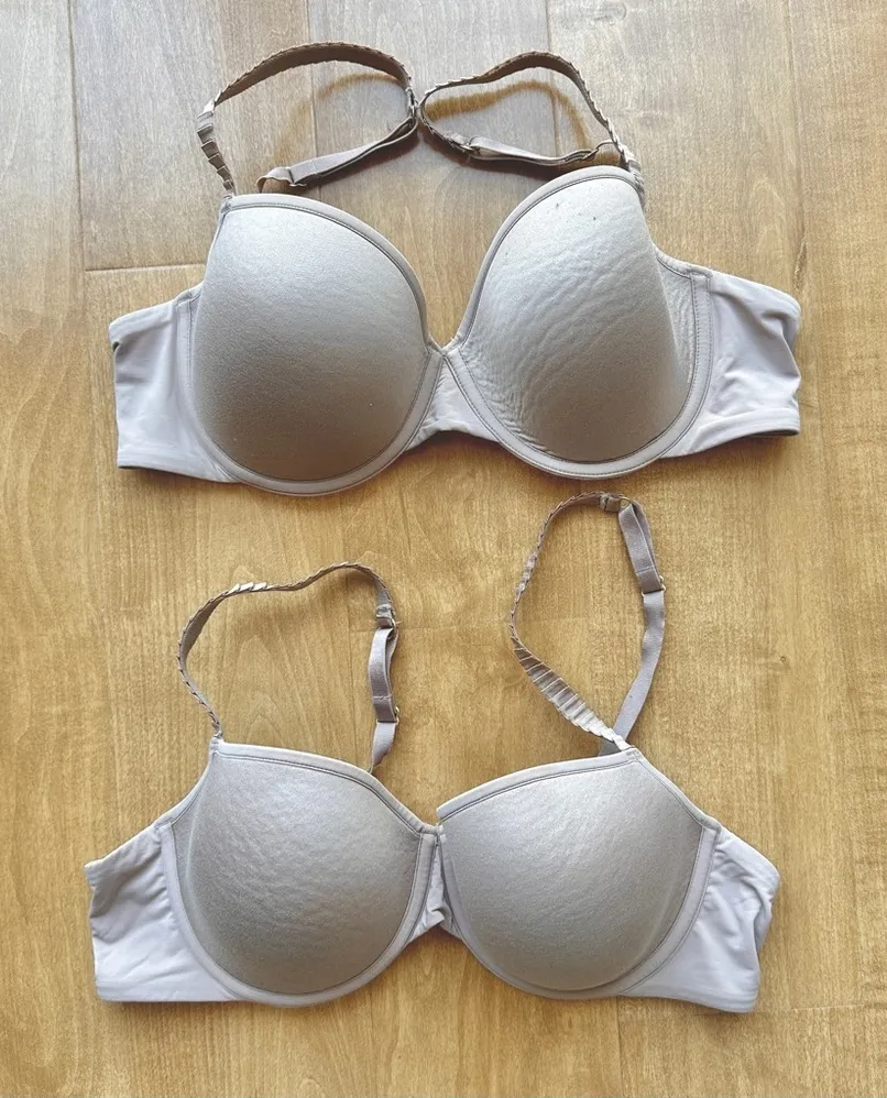 Experience comfort and support with these bras. Perfect for everyday wear. Excellent condition. • Size 36B1/2 - fits true to size • Adjustable straps • Lightly padded cups These items come from a pet- and smoke-free home. There are no holes, rips, tears, or stains.