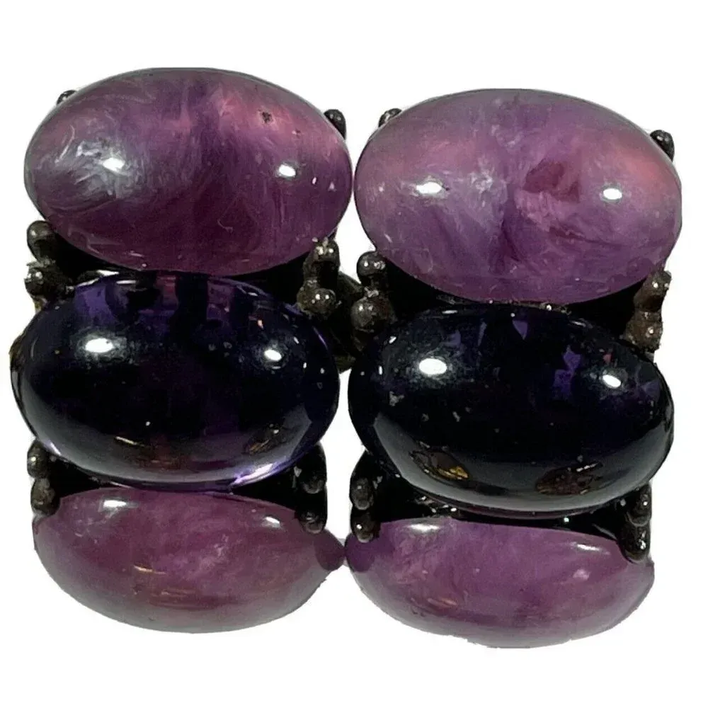 Set‎ Of 2 VTG Purple Enamel Rhinestone Hoop Clip On Earrings - $15 - From Andrea