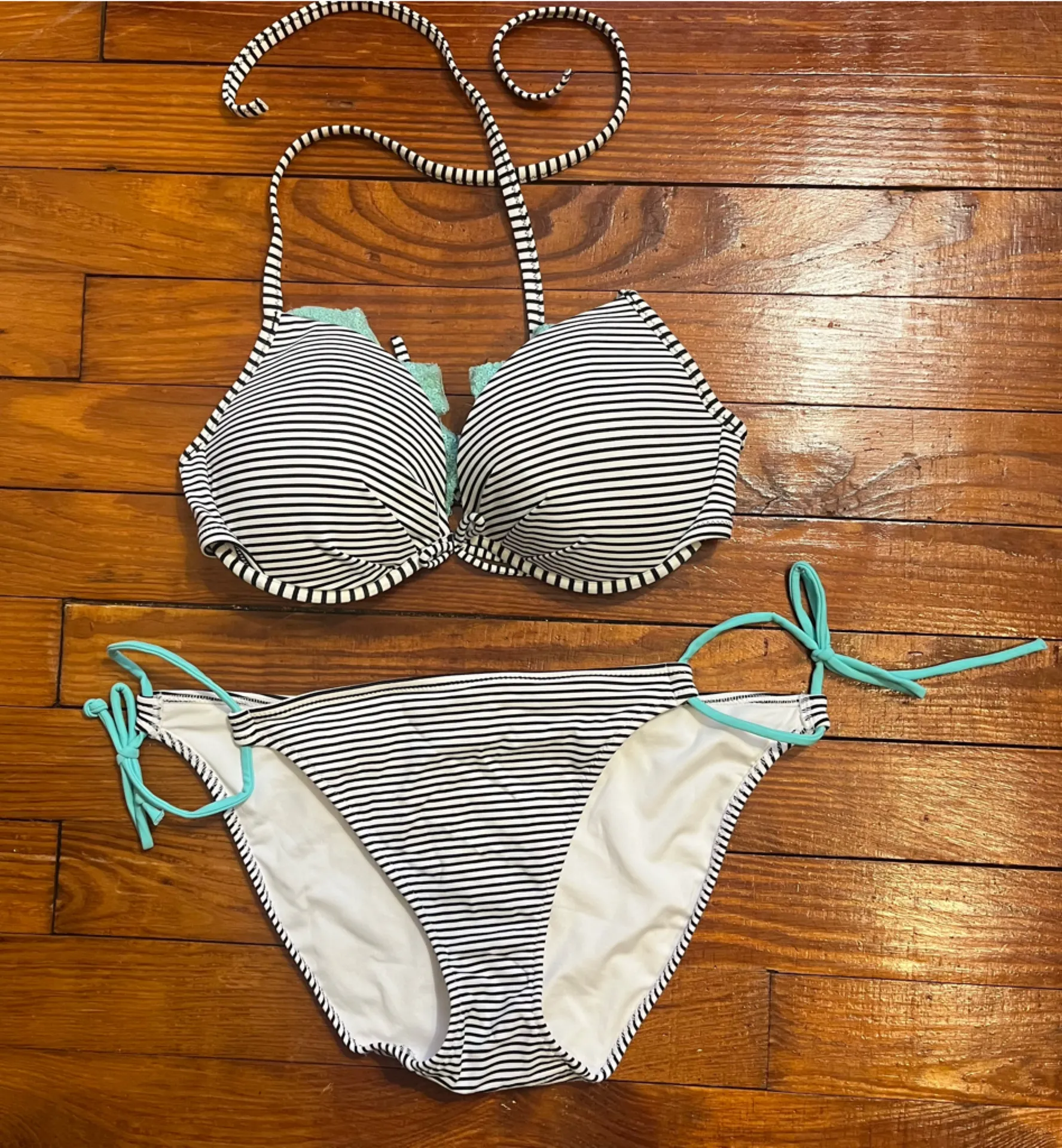 Victoria secret Teal accent stripe bikini Set of 3 (2 different bottom options) Top 36D Bottoms both... Show more
