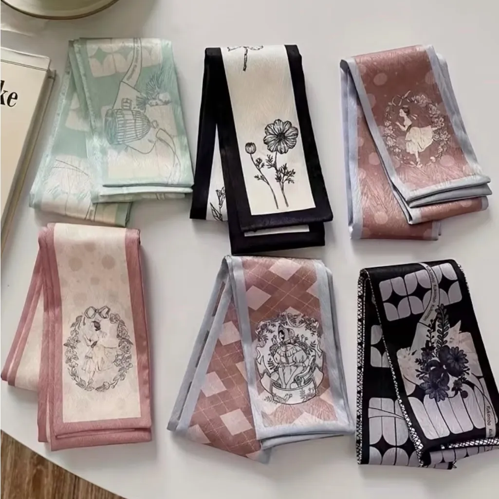 Set of 6 coordinating twilly scarves featuring elegant floral, botanical, and vintage-inspired print... Show more