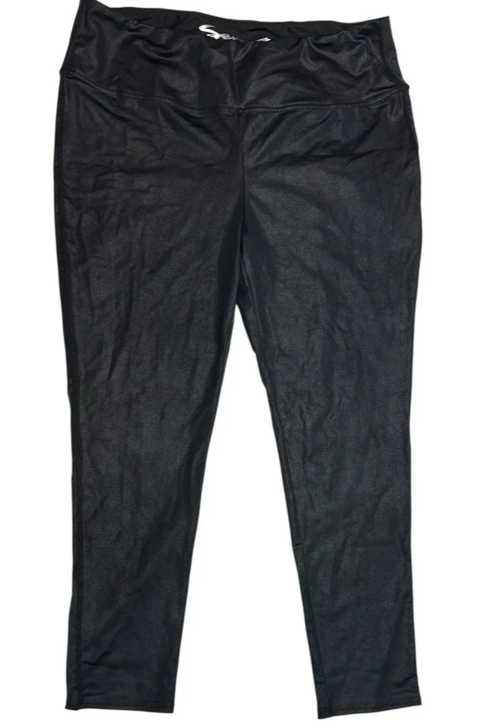 The product is a pair of plus-size XXL black faux leather leggings from the brand Seven. With a high waist and ankle length, these leggings are made of blended fabric with elastic waist for comfort and stretch. They are suitable for various occasions such as travel, activewear, formal, and clubwear, reflecting an edgy and trendy style perfect for those who love hipster, designer, and rock-inspired fashion. These leggings are machine washable and offer a stylish and versatile addition to any wardrobe for all seasons. Details: Elastic waist, faux leather, high waist, ankle, stretch Material: Nylon, spandex Condition: Pre-loved, in great condition. Color: Black Size: XXL (waist lying flat 19" rise 10" inseam 25") Style Aesthetic: Edgy, Clubwear, Faux Leather, Sexy, Moto-inspired 8.26.25