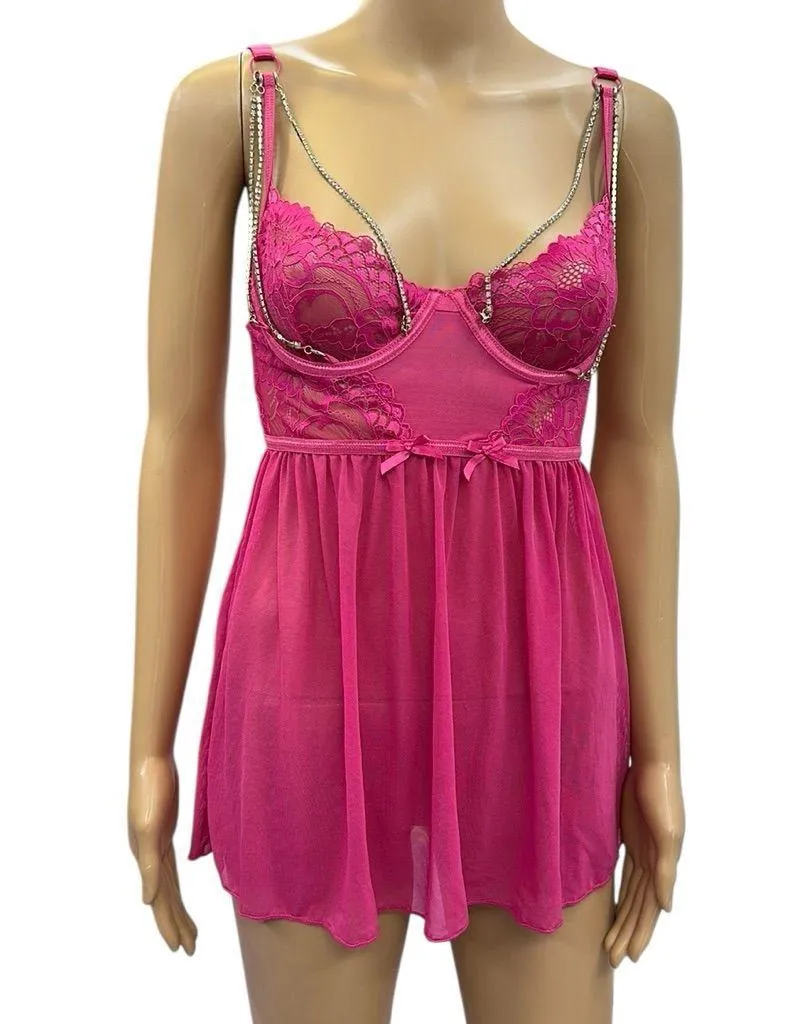 Questions? Leave a comment below! Seven Til Midnight Pink Babydoll Lace Mesh Rhinestone Chai... Show more
