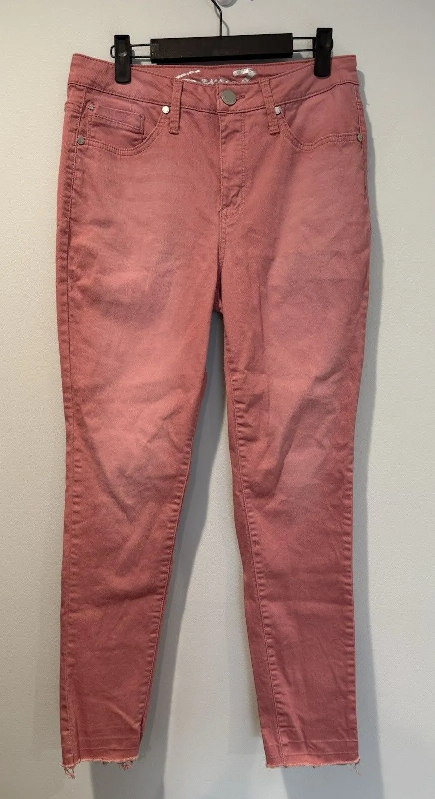 Seven7 Jeans Womens 10 Pink Raw Hem Mid Rise Ankle Skinny Preppy Stretch Pockets · Size 10 · Materials 98% Cotton, 2% Spandex Measurements (Approx.) · Waist: 29 inches · Rise (waist to crotch): 10 inches · Inseam (crotch to hem): 27 inches · Total Length (waist to hem): 37.5 inches Condition: Preowned, Very Good- no holes/stains (see photos)