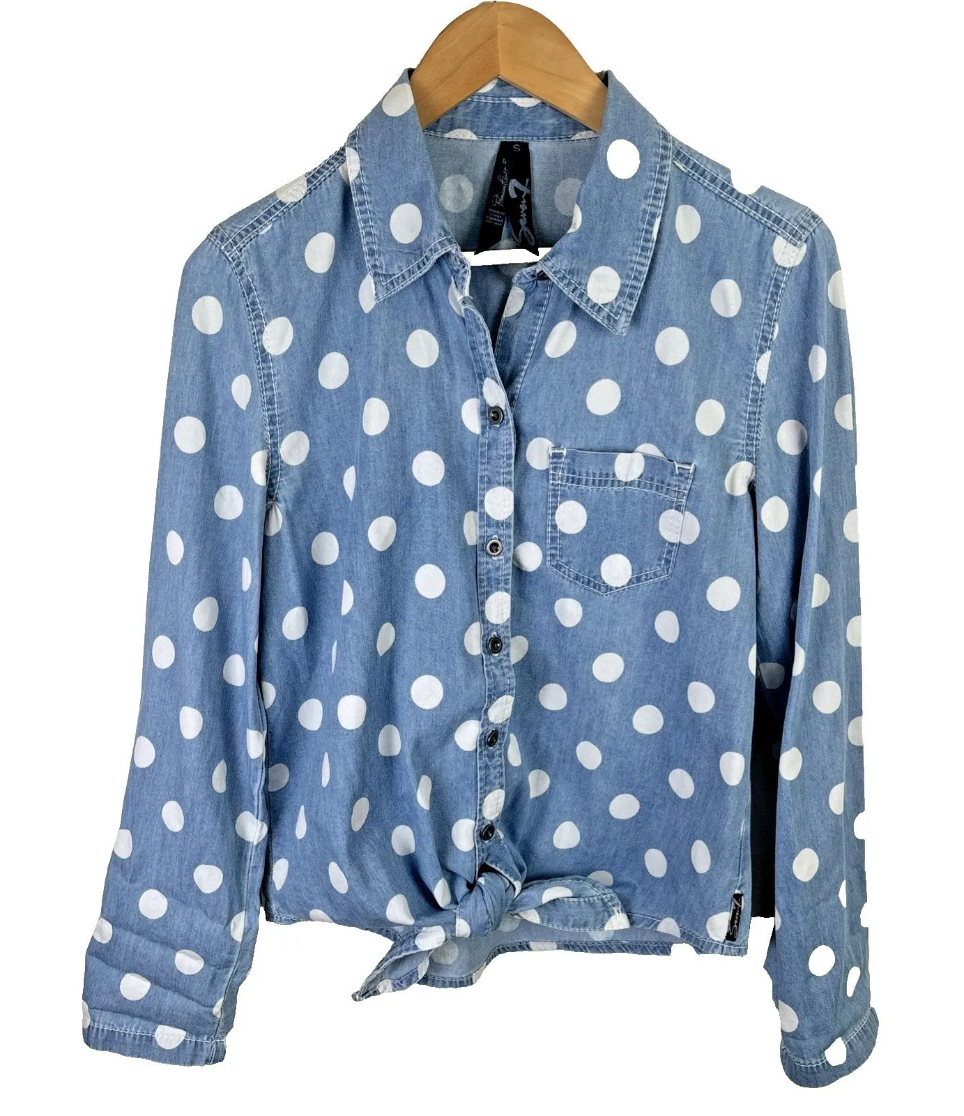 Seven 7 Womens Button Up Shirt Size S Chambray Denim Top Polka‎ Dot Long Sleeve Blue - $20 - From Krystal