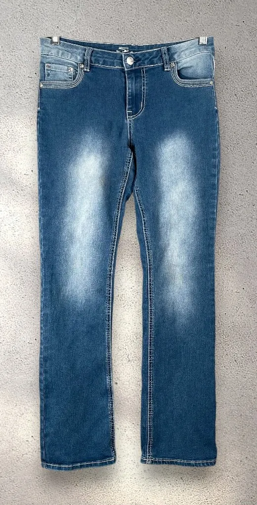 These Seven7 jeans capture that early-2000s charm ā stone-washed blue denim with signature āSā heart embroidery on the back pockets. The mid-rise straight fit and soft cotton blend make them comfy and flattering for everyday wear. Slight mark on the front that blends naturally with the denim wash (see last photo). A fun, nostalgic pair for casual Y2K looks or modern minimalist fits. Good preloved condition! š ā Heart-embroidered back pockets ā Stone-washed mid-rise denim ā Classic straight leg fit Tags ā Seven7, Y2K jeans, straight leg, stone wash, embroidered denim, heart detail, vintage denim, streetwear, casual