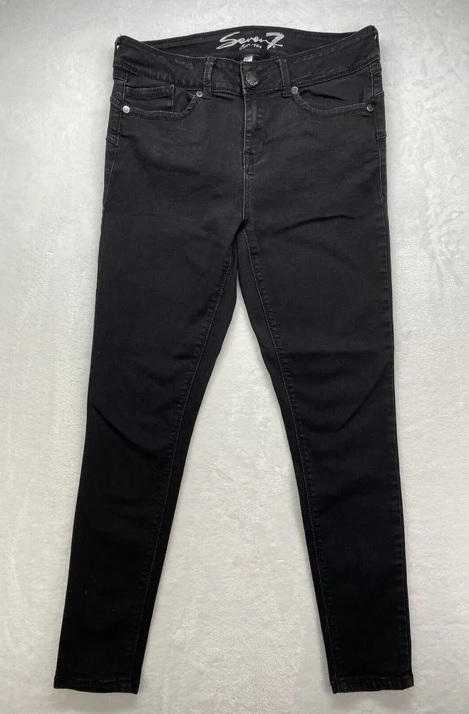 Seven7 Women's Legging Booty Shaper Skinny Jeans * Size: 12 * Color: Fawn Black * Mid rise fit * Skinny leg * Booty shaper design * Stylish and flattering * Perfect for casual and dressy occasions All items have been steam cleaned and/or washed. Good preowned condition, see photos for CONDITION and MEASUREMENTS, as they may differ from the tag.