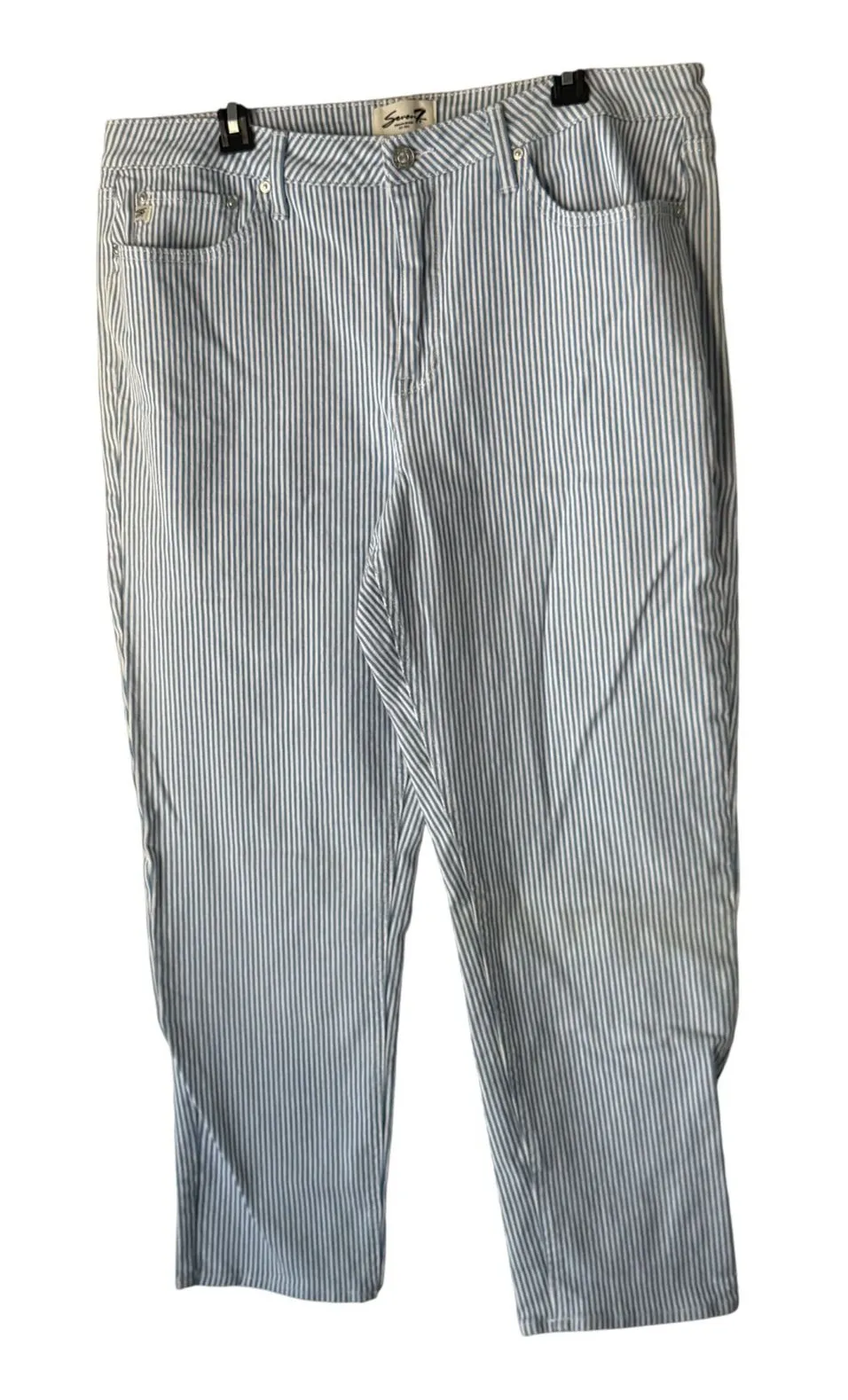 Seven7 Women's Striped Straight Leg Jeans Blue White Size 16 Retro 2010s Waist 36 High Rise Insea... Show more