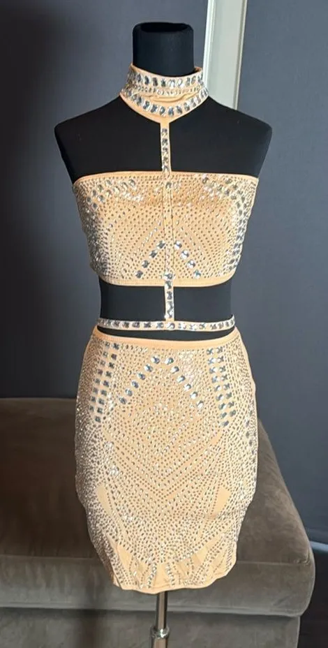 Women’s Sexy BodyCon 2 Piece Set/Outfit Rhinestone Skirt & Halter Top Form Fitting Outfit Size M -p... Show more