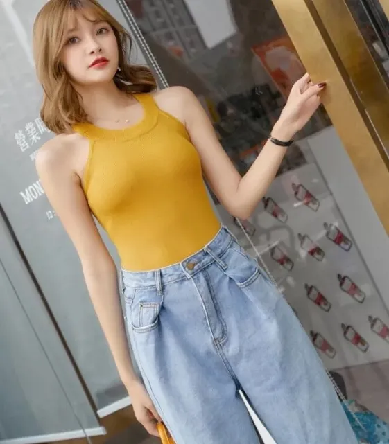 Sexy Women Knitted Tank Tops Vest Sequined‎ U Neck Long Crop Tops Solid Yellow Size XS - $20 New With Tags - From Shelley