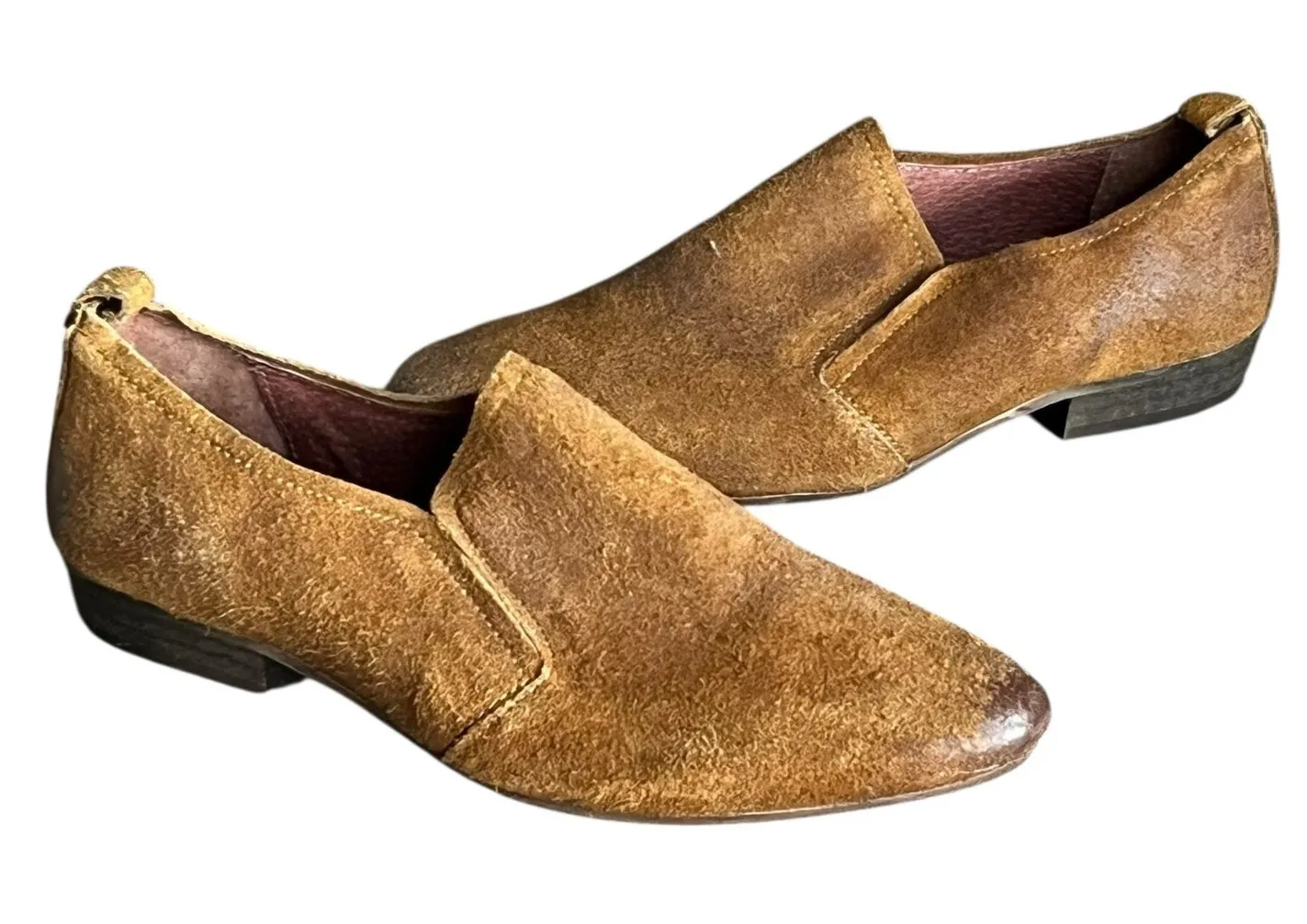 Seychelles Skein Loafer Shoes Womens Size 9 Tan Nubuck Leather Slip On Modern Classic Excellent pre-owned condition Easy slip on Pointed toe Low stacked heel Nubuck leather upper with hidden elastic gore Man-made lining Man-made footbed Synthetic outsole boho, cottage, western