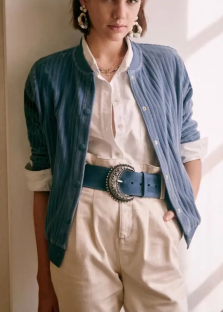 Sezane Blouson Iris cotton velvet jacket vintage blue SZM bust 43in Size M - $160 - From Abigail