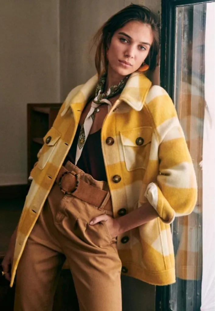 NWOT Sezane Alda plaid coat yellow tiles check oversize look SZ40 US8 bust48 in White Size 8 - $369 - From Abigail