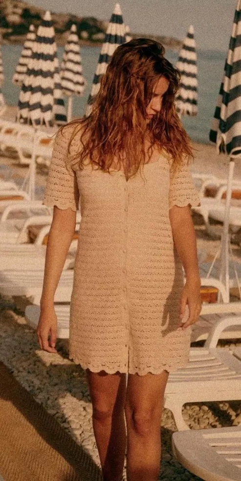 Up for purchase today is... Designer: Sezane Size: XS Fit: Please do not go by size number but rather check measurements listed below to determine if the item will fit. Color: Cream Style/Design #: S221ROB131E Material: 100% organic cotton / Lining 95% viscose, 5% elastane Details: * A light, spring look: this short sleeve openwork crochet mini dress with see-through details at neck and sleeves. Alongside a slip lining and button fastening, you can choose how open it is to suit your mood. Square neckline. Mini length. Button front. Lined. Hand wash. Imported. * Condition: New with tags Retail: $195 Measurements: Chest - 32" Waist - 31" Length - 33"