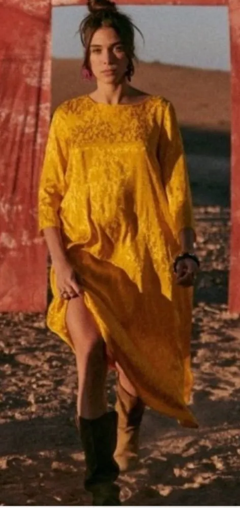 Sezane 42 US 10 Tinsley Jacquard Yellow Midi Dress 3/4 Sleeve - $94 - From Most