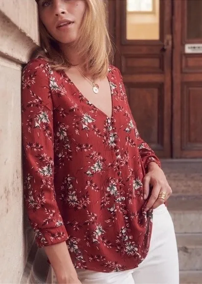 Sezane Heloise‎ autumn floral blouse size 34 or US 4 romantic feminine boho Red - $57 - From Snob