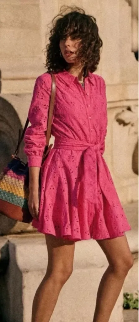 Sezane Sol hot pink Eyelet cotton Mini Dress Size34 bust34 US2 Size XS - $174 - From Abigail