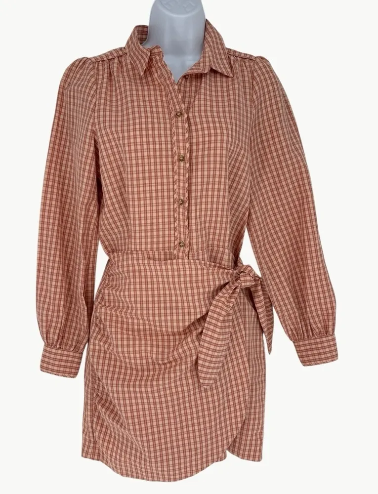 ❀ Details • Condition: Gently Worn ❀ Pre-owned with minimal signs of wear, no major flaws • Size: 36 (US 4) • Color(s): Rose Pink • Imported ❀ Features • Long sleeve • Faux wrap front • Front button closure • Button cuffs • Plaid print • Linen blend fabric • Parisian-inspired style • Timeless & elegant piece • Elevated everyday essential • Made for days when you want to look put-together with ease • This item is a past-season favorite & no longer sold by Sézane. Don’t miss out on this rare find! ❀ Sizing Details Measurements are approximate. ❀ Bust: 34.5” (Flat across fullest part, doubled) Length: 34” (Shoulder to hem) Waist: 28.5” (Flat across natural waist, doubled) Hip: 31” (Flat across widest part, doubled) ❀ Materials & Care Materials: 60% Linen 40% Polyester Care: Machine wash | Do not tumble dry