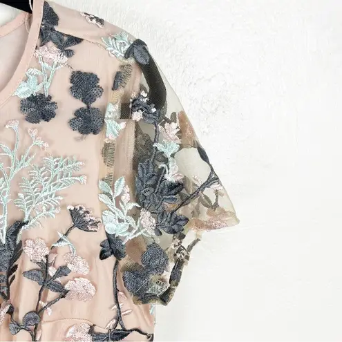 ADRIANNA PAPELL Pink Embroidered Mesh Overlay Hidden Back Zipper Cap Sleeves Fully Lined Fit And Fla... Show more