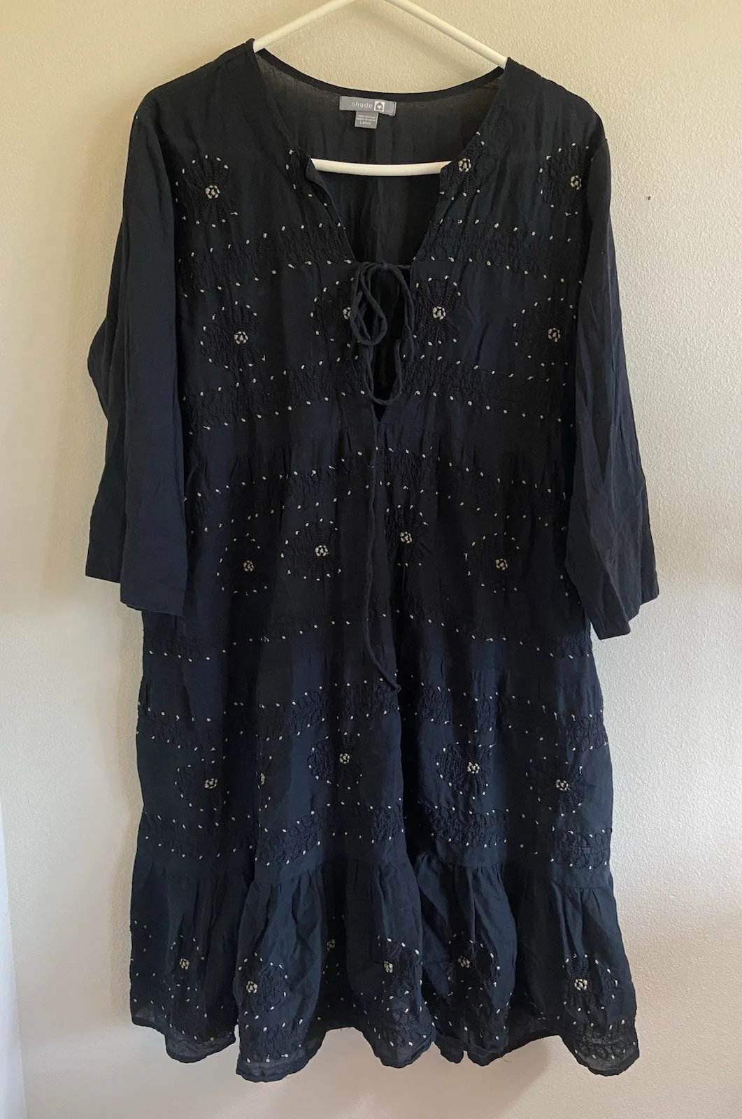 Shade Amour Black Embroidered Floral Vneck Tie‎ Front Cotton Dress Boho Large - $30 - From Hilary