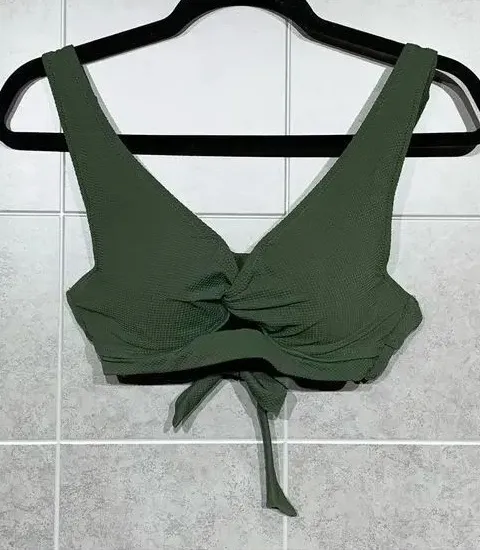 Olive green textured bikini top from Shade & Shore featuring a wrap-style design with a flattering V... Show more