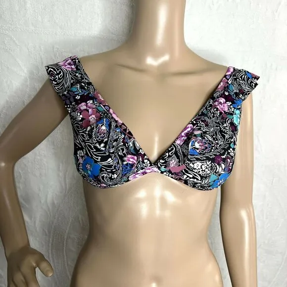 Brand: Shade & Shore Size: large Color: black, purple Features: ruffle strap sleeves, adjustable tie... Show more