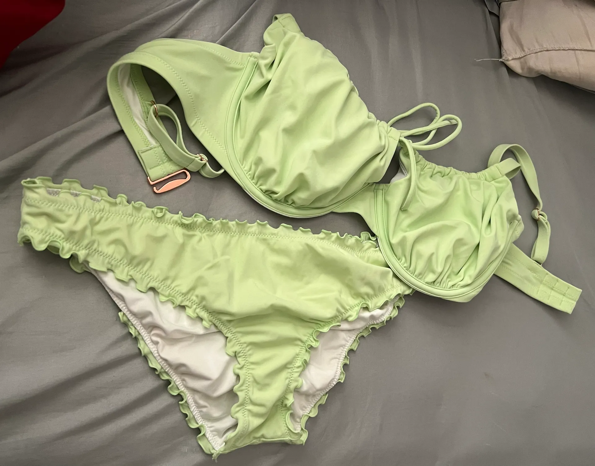 used, like new. top is a 38D, but fits me and I'm a 34DDD. bottoms are a large and are a bit big on... Show more