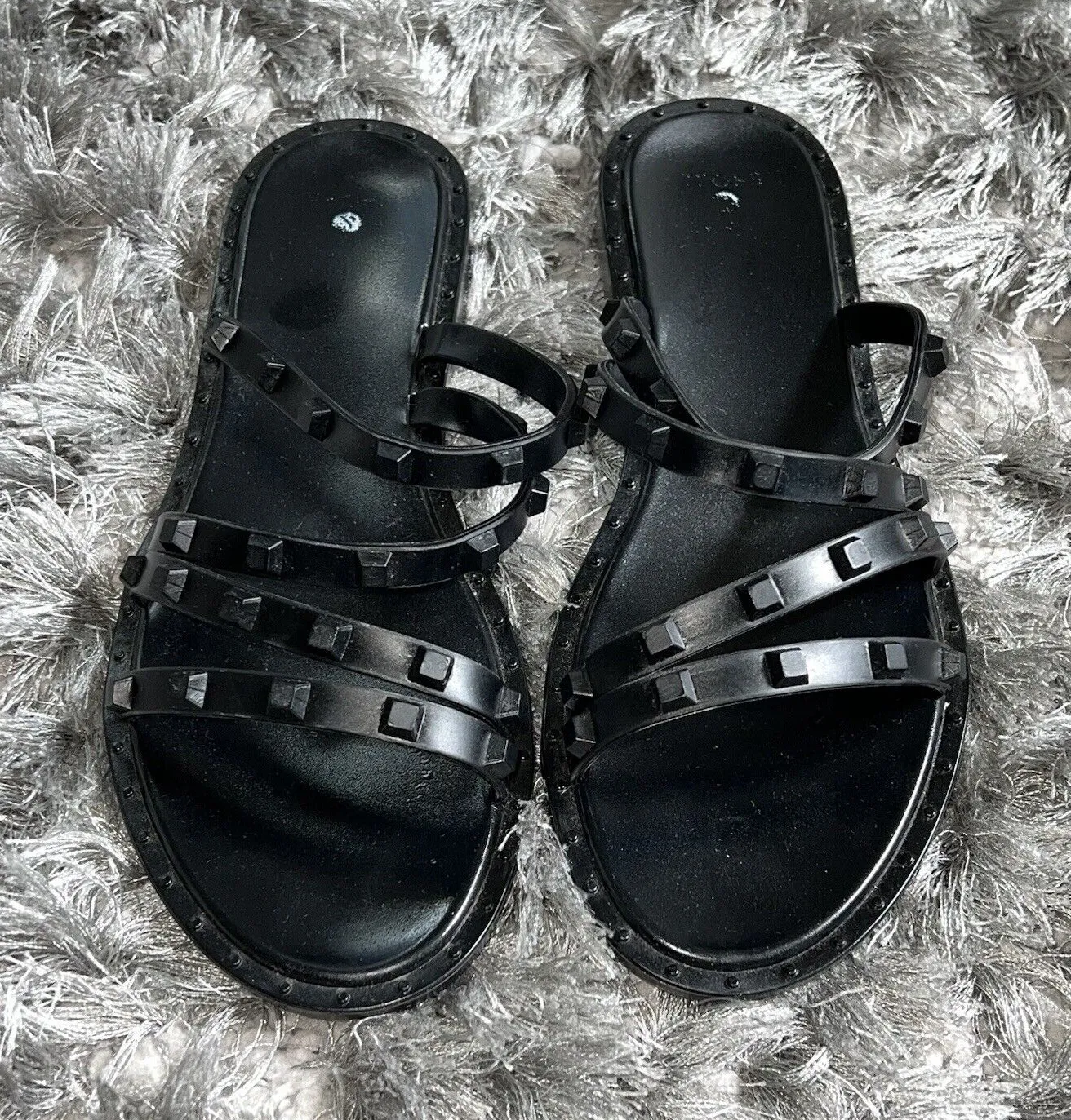 Shade & Shore Women's Slip On Sandals Shoe Size 6 Studded Black Strappy Flat. Preowned. Good condit... Show more
