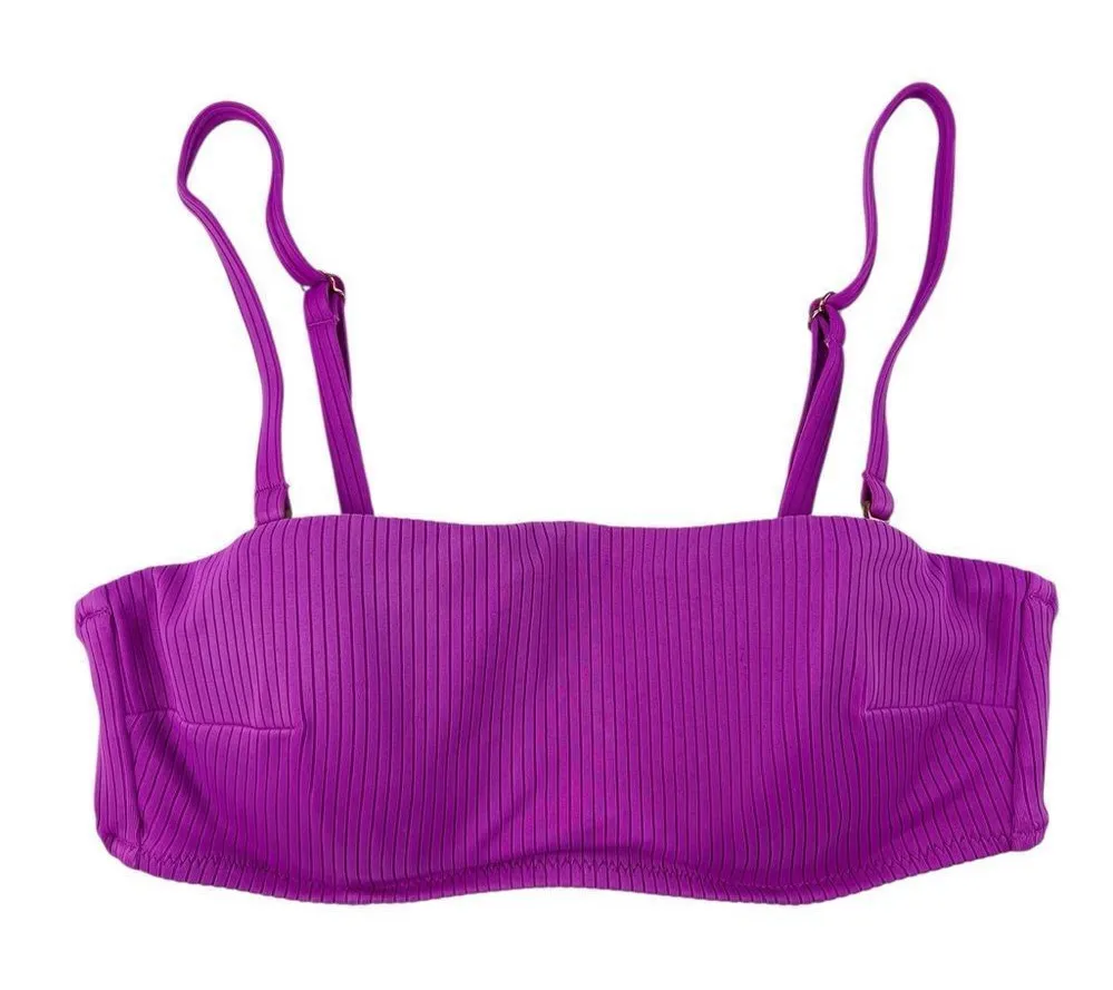 Super cute pre-owned Shade & Shore Bright Purple Ribbed Bandeau Swim Bikini Top Size 32B. Comes with... Show more